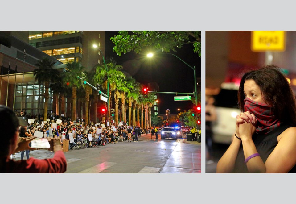 The following images document two weeks of Las Vegas’ response to the death of George Floyd. Floyd, a Minneapolis man, was killed in police custody in Minnesota on Memorial Day. This post is part of a two-part series with images shot after the sun set. Please see “BLM Day” for the other half of this story.