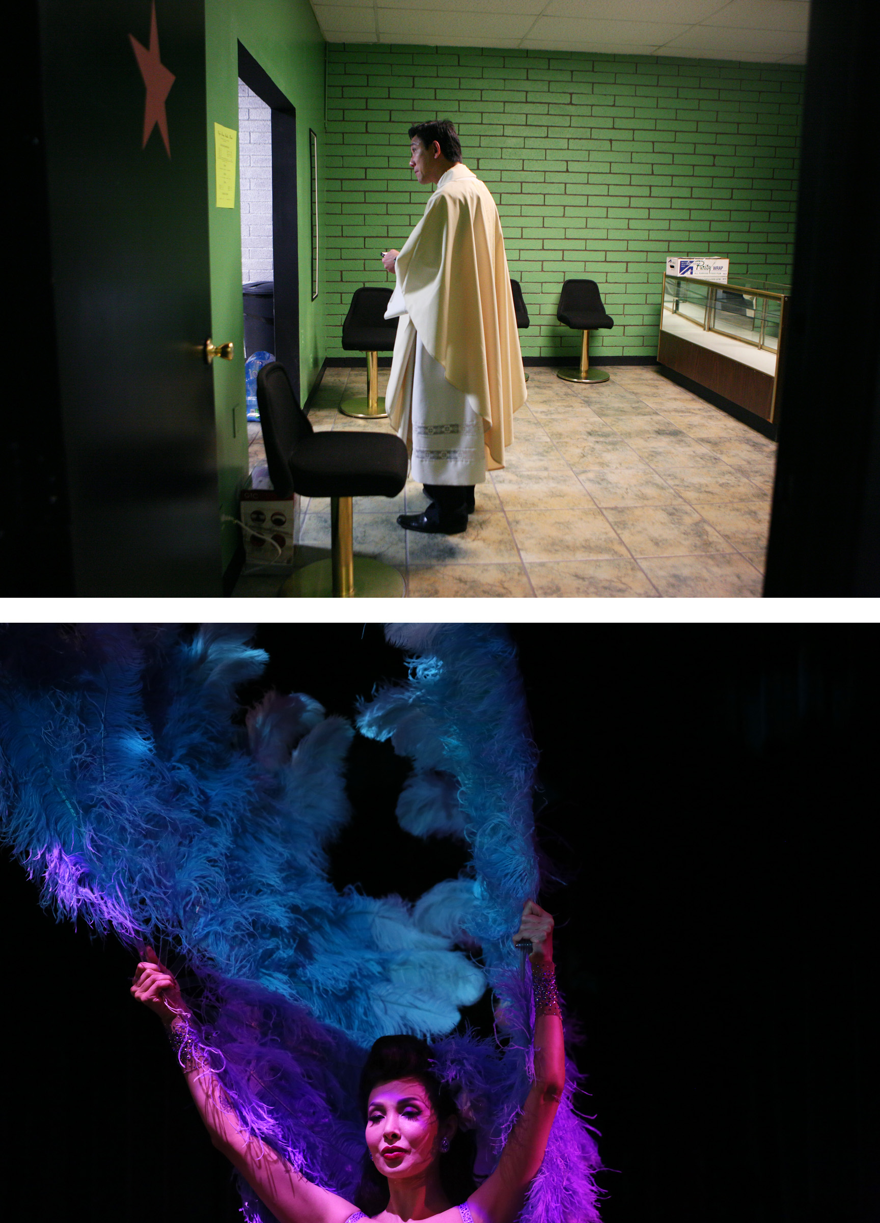 It should seem fitting that only in Sin City, would I be sent to cover an assignment at a church. After spending nearly two hours at the church with the kindest strangers I have encountered in a long time and listening to the Rev. George Balgan embrace his small and tightly-knit group of parishioners with an open heart, I left the little makeshift church that is nestled in a commercial center among ethnic restaurants. Within 20 minutes and less than 2 miles of a drive, I was standing in a strip club. My next assignment was to cover a comedian who was performing in the club’s showroom. A burlesque act offered entertainment in between a set.