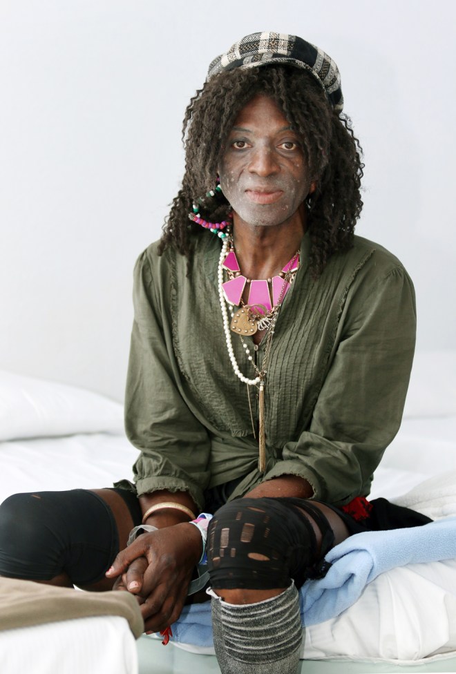 Michael sits on the edge of a bed in the Safety Dorm for transgendered individuals at The Salvation Army Tuesday, Oct. 13, 2015, in Las Vegas. Michael spent three months in the Safety Dorm prior to getting his own transitional apartment on campus. The Safety Dorm’s purpose is to ensure the safety and wellbeing of transgendered individuals who come through the shelter.